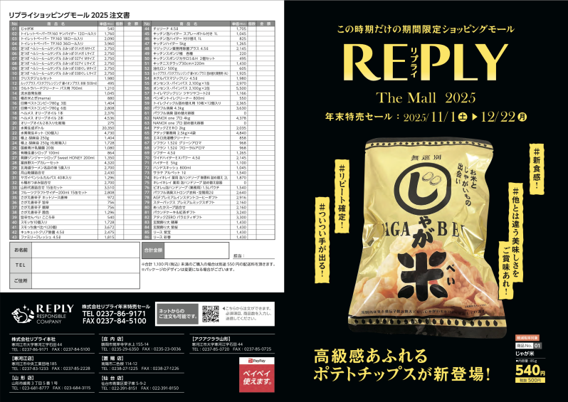ご注文は、お近くのリプライスタッフ・もしくは専用webページよりお気軽にどうぞ!